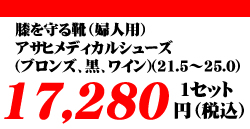 膝を守る靴、アサヒメディカルシューズ婦人4E(ブロンズ、黒、ワイン)(21.5~25.0)